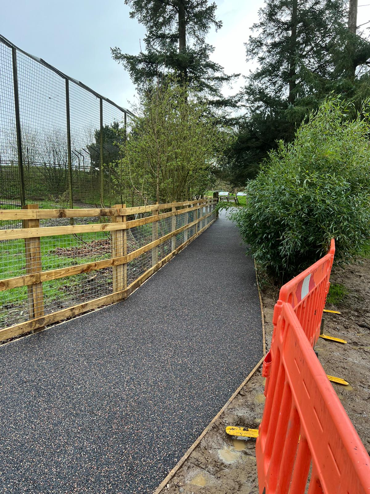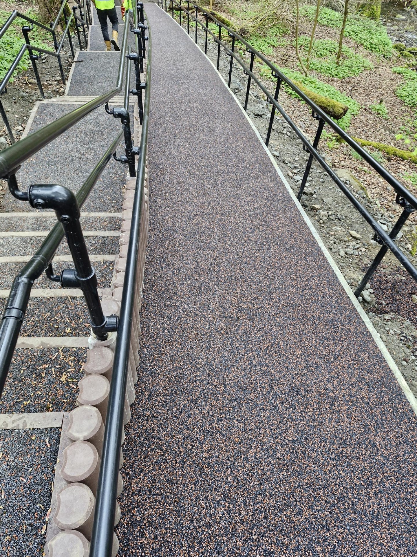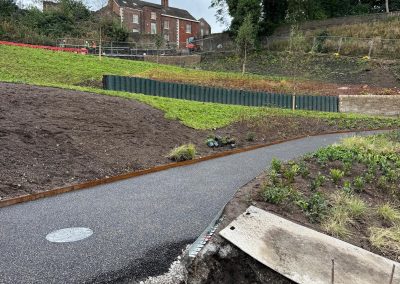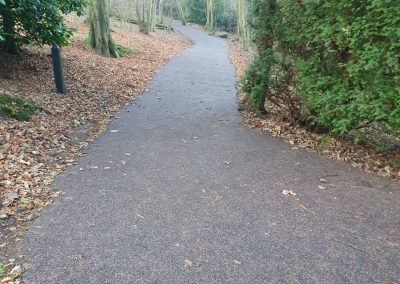 Originally developed for areas containing trees under protection order. Trailflex allows for up to 90 degree flexibility without compromising weight loading or strength, making the finished surface adaptable in physical form therefore removing any risk of root intrusion and subsequent cracking. Trailflex is suitable for use in public realm spaces by reducing trips and falls subsequently providing a pleasant surface on which to walk. Due to the shock absorbent qualities of the surfacing it can also reduce the risk of potential injury from falling to cyclists and pedestrians.